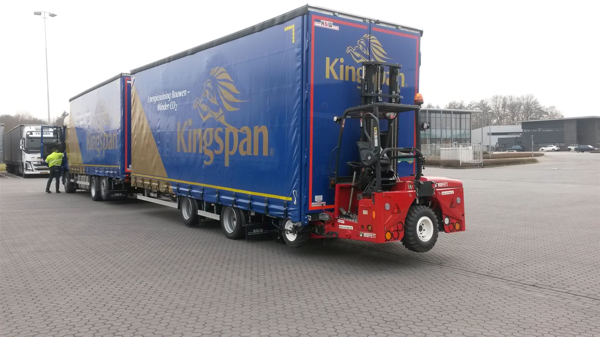 Hout distributie voor het afleveren op de bouw met behulp van korte citytrailers of volume combinaties voor maximaal laadvermogen